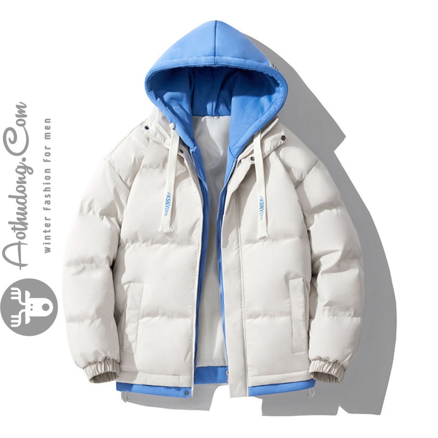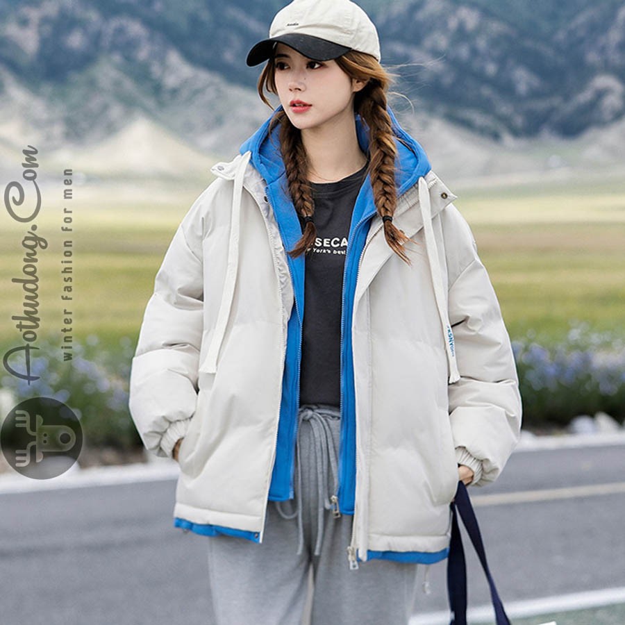 Áo có 3 lớp với lớp ngoài cùng là vải gió dày dặn chống gió tốt, bên trong trần bông siêu nhẹ giữ nhiệt ấm cực tốt, bên trong là lót vải lụa mềm mại. Áo có 2 túi ngoài rộng chắc chắn, trong có 1 túi tiện lợi, khóa chính làm từ nhựa cao cấp mặt khóa bằng hợp kim không rỉ cao cấp. Áo được gia công tinh xảo với đường chỉ chắc chắn làm lên chất lượng sản phẩm. Áo có thể giặt máy nên vô cùng tiện lợi. Áo có màu trắng ngà phối mũ xanh trẻ trung phù hợp cả nam và nữ. Sản phẩm rất phù hợp cho các bạn trẻ sử dụng cho các hoạt động ngoài trời, đi chơi hoặc đi du lịch trong những ngày đại hàn.
